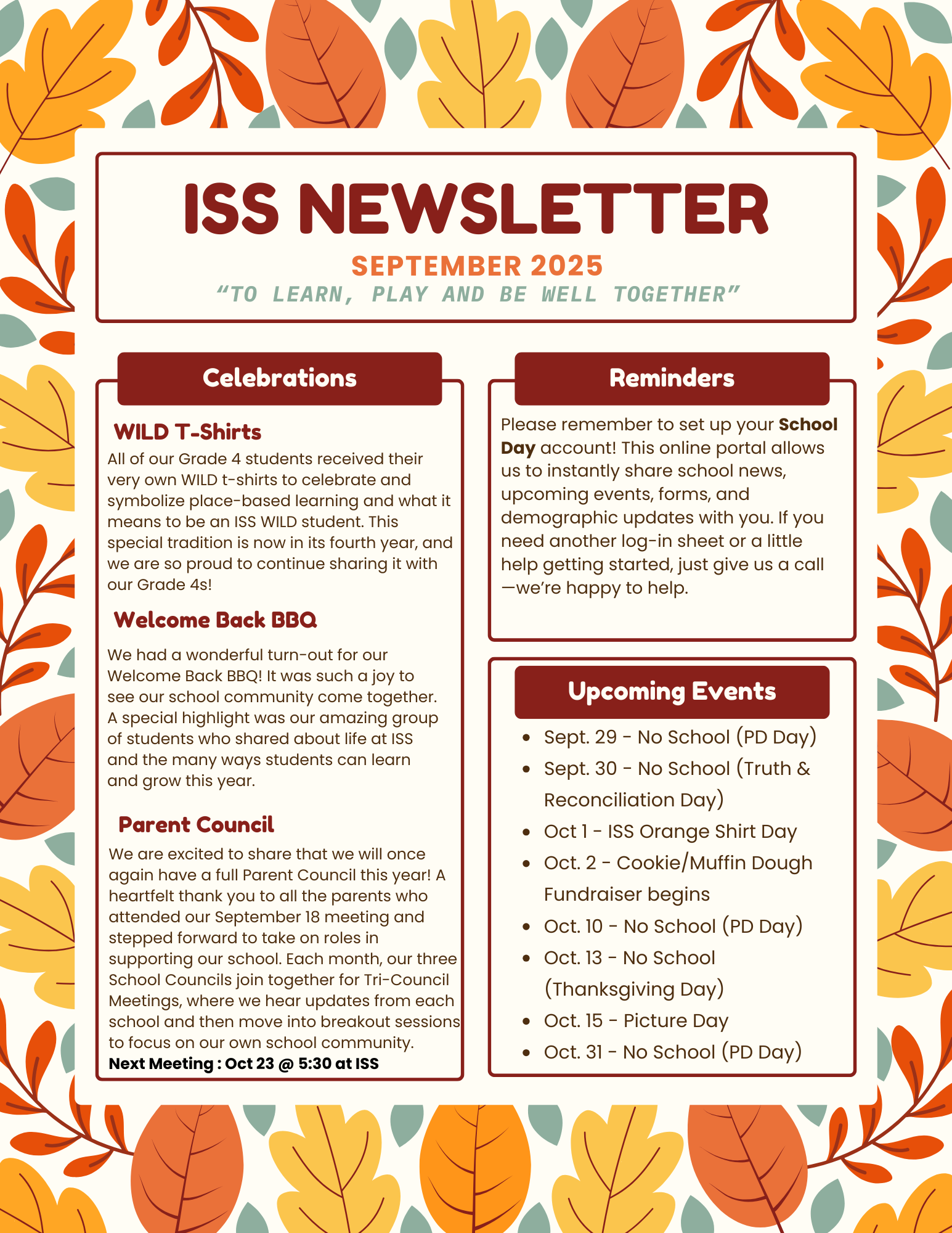 Back to all posts Posted on September 25 2025 September 2025 School Newsletter September 2025 School Newsletter Check out our first newsletter of the 2025-2026 school year! Our school newsletter is published to our website and Facebook page at the end of each month. Prev Post
